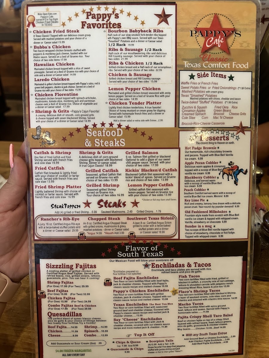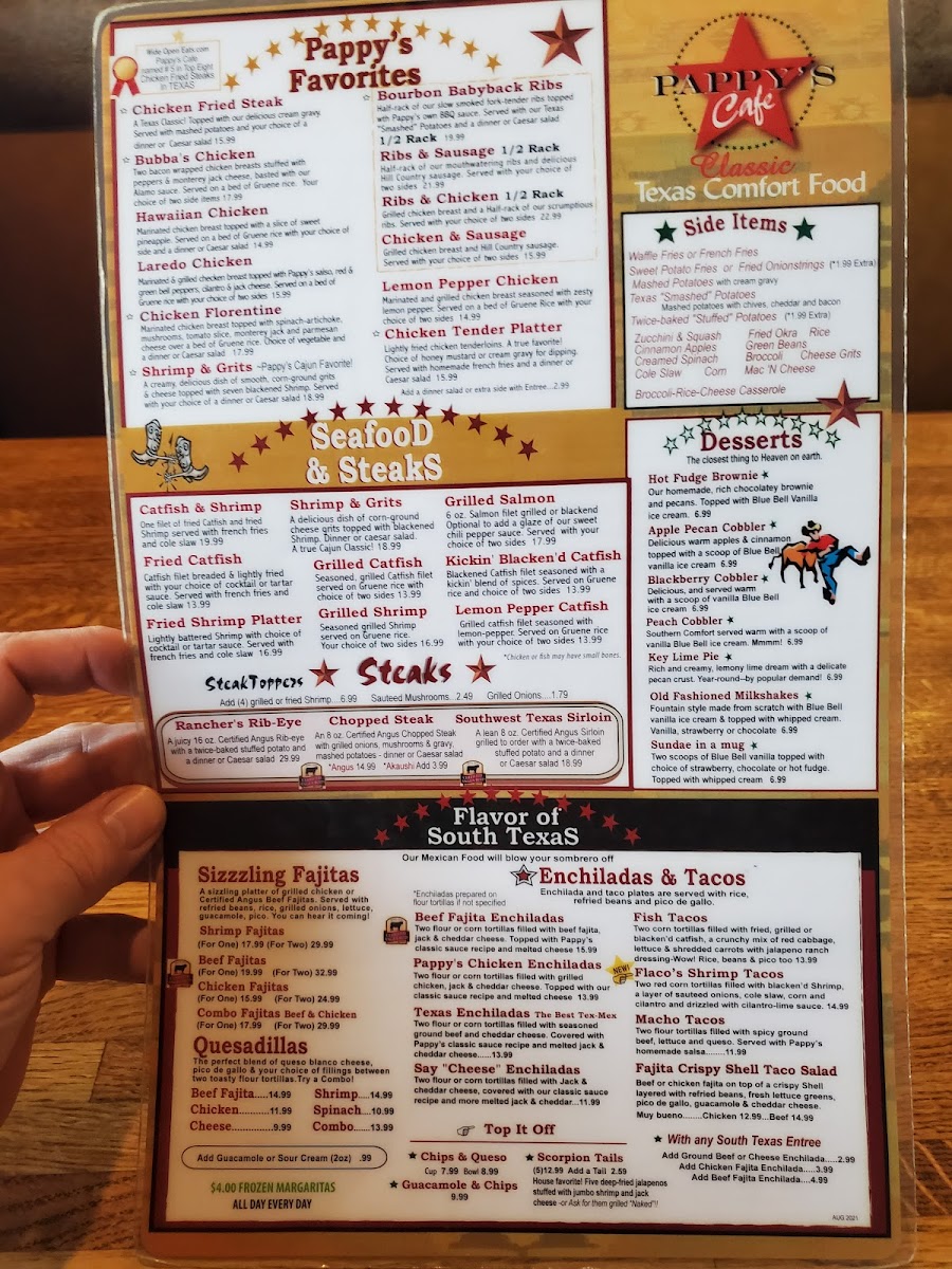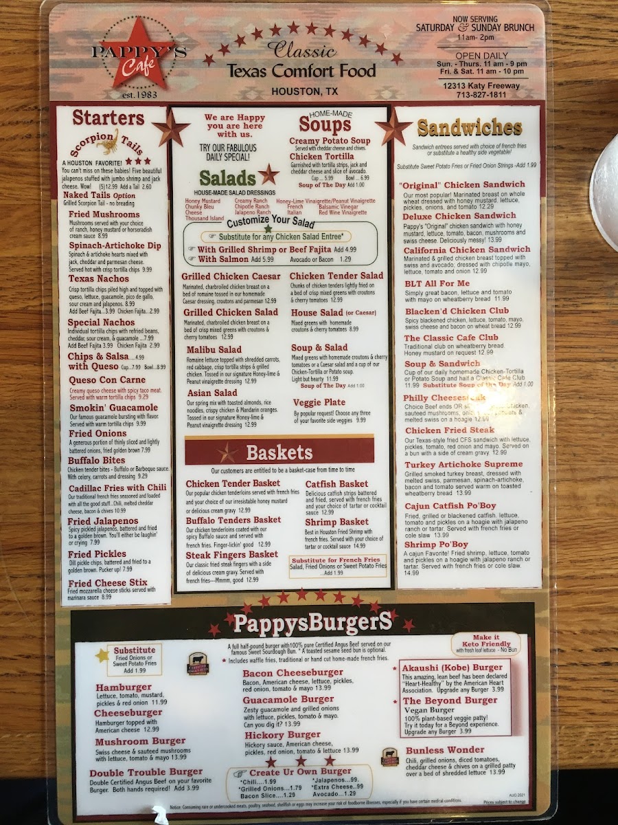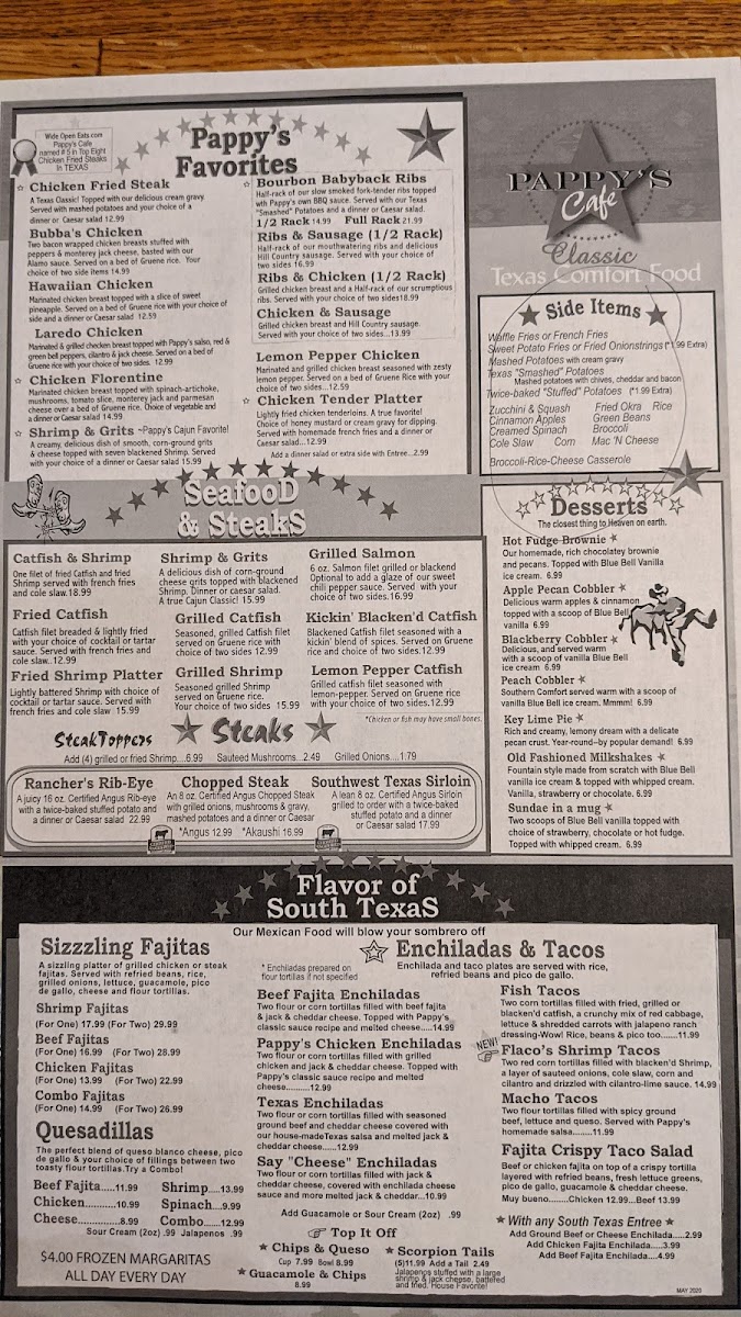 Welcome to Pappy's Cafe, a hidden gem nestled in Houston, TX, where Southern comfort meets seafood and steak delights. This vibrant eatery offers a mouthwatering menu that features standout dishes like Grilled Salmon and Kickin' Blacken'd Catfish, expertly seasoned and served on a base of Gruene rice. For those craving something hearty, the Chicken Fried Steak steals the show, paired with homemade mashed potatoes.